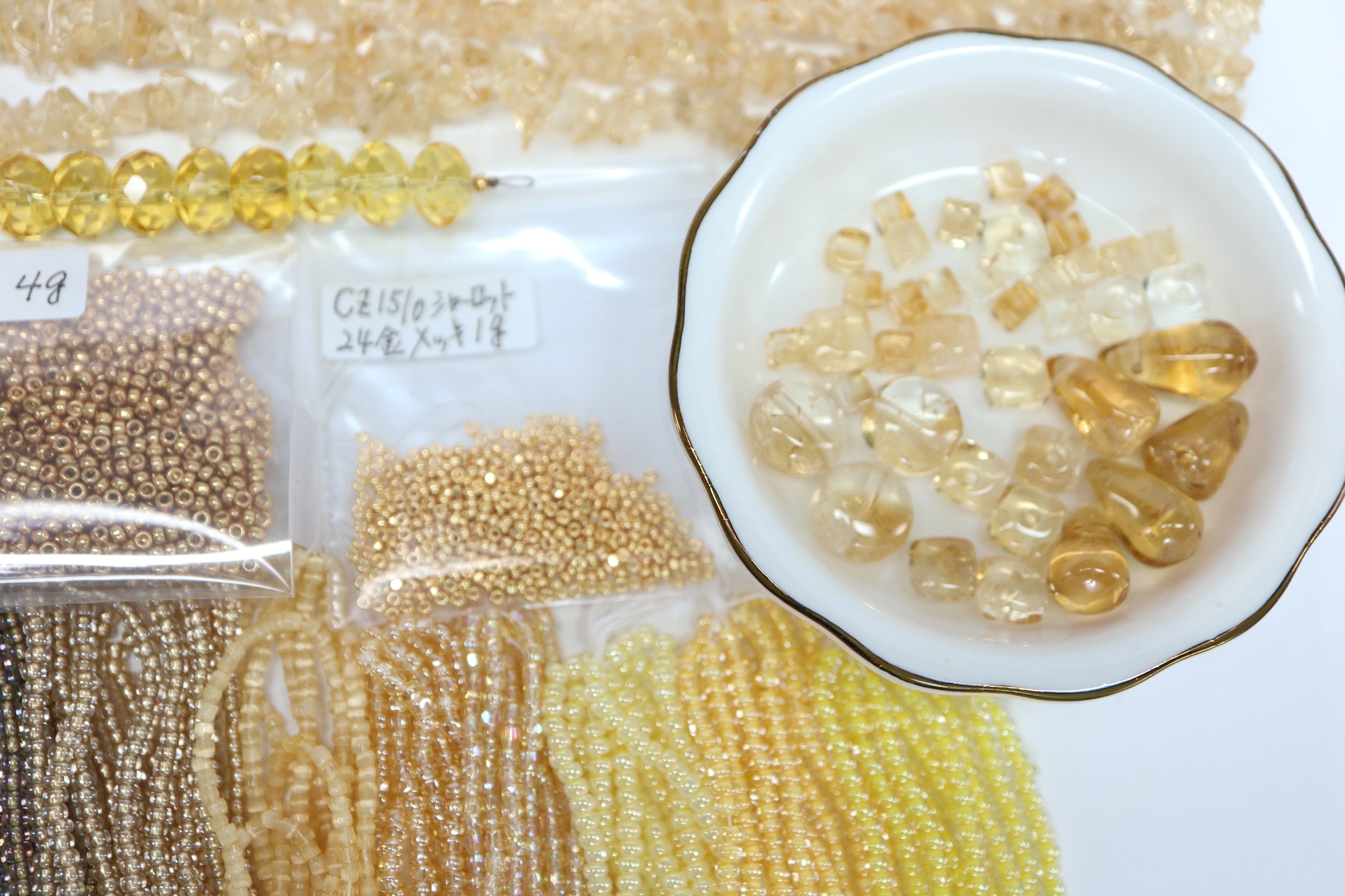 3. お皿左横の2パックMIYUKIビーズとチェコ24金メッキ