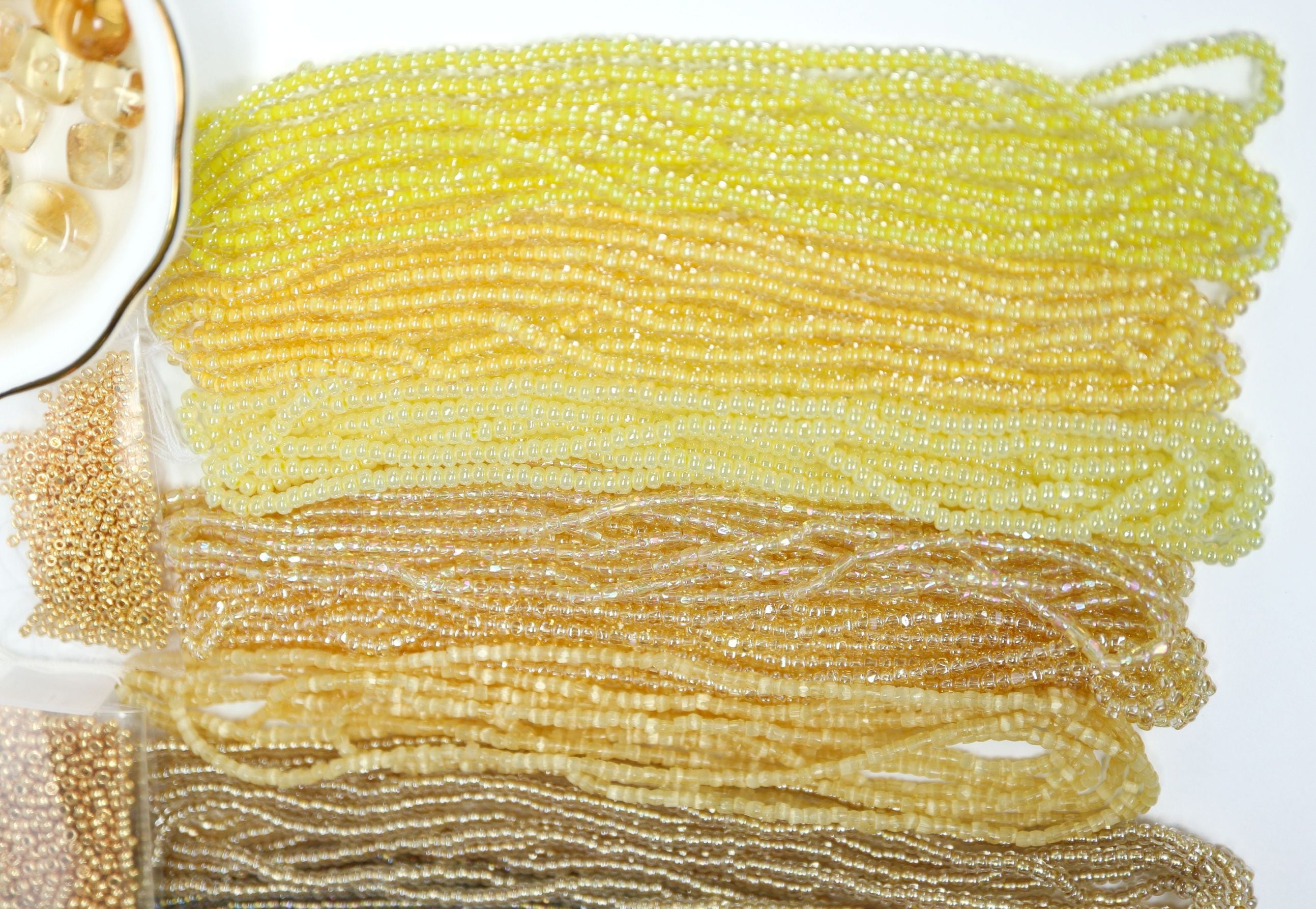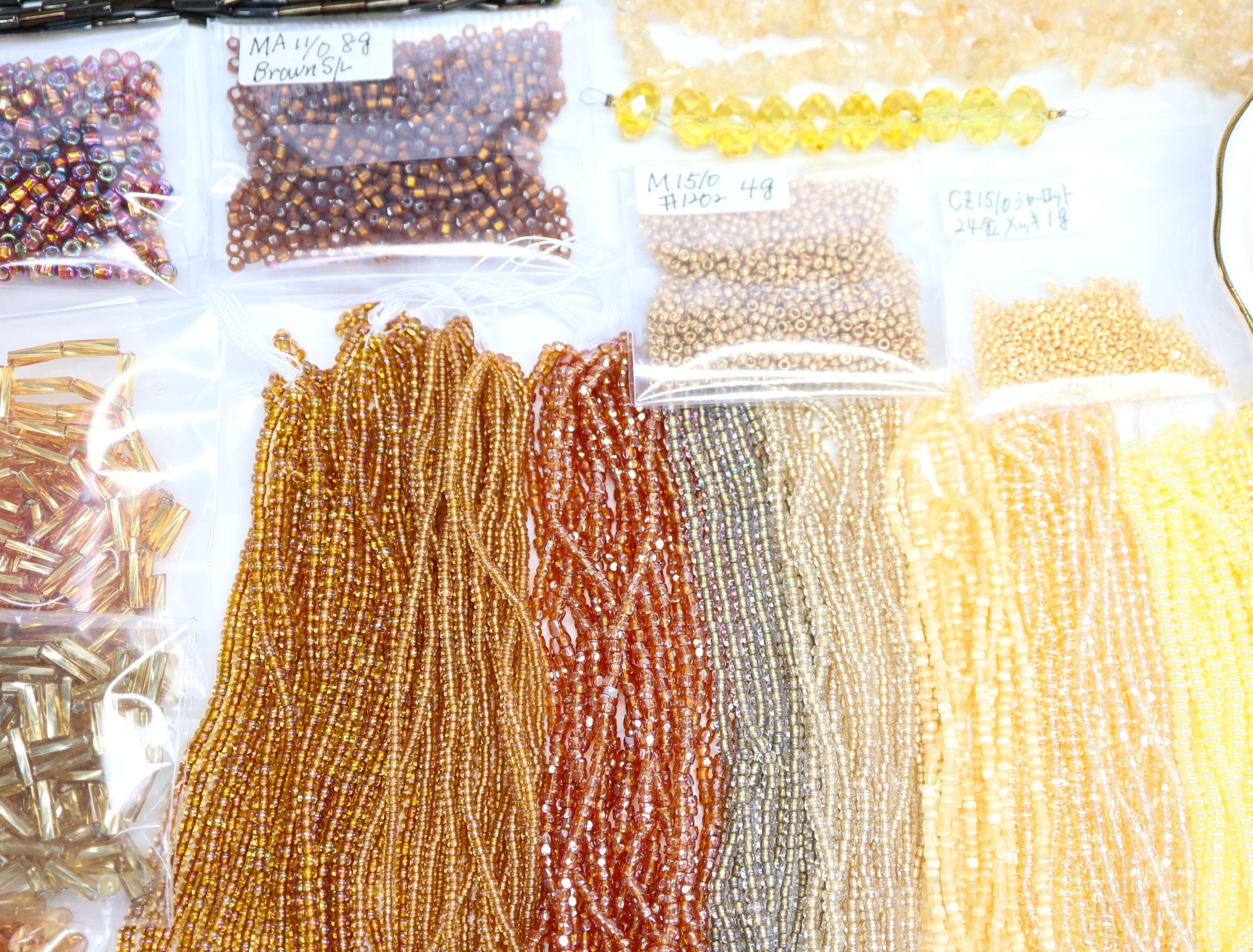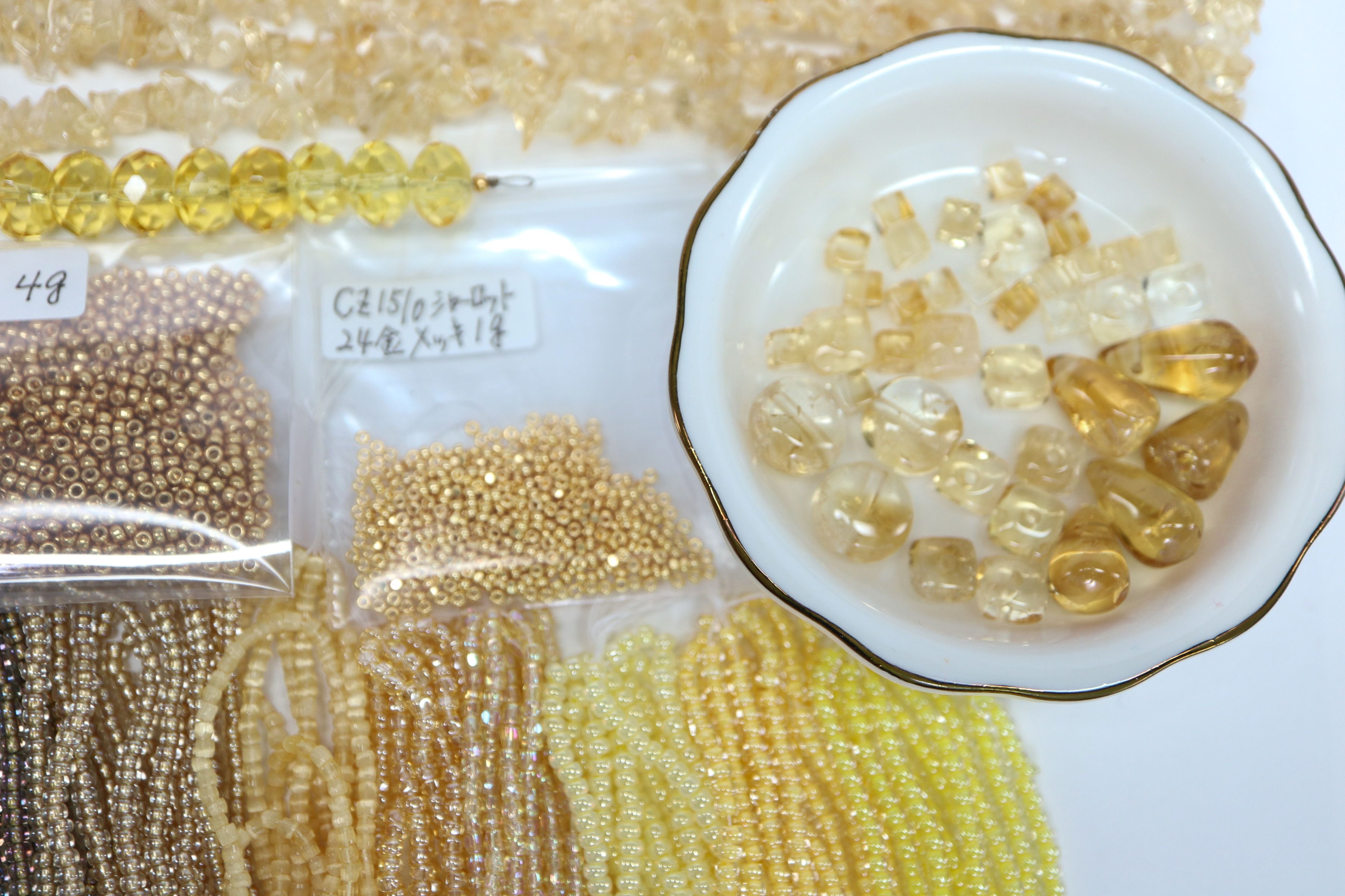 4. 右端から3色はTOHOビーズ 丸小 各1m 上品なイエローです。 チェコ 丸 *〈バラビーズパック入り〉