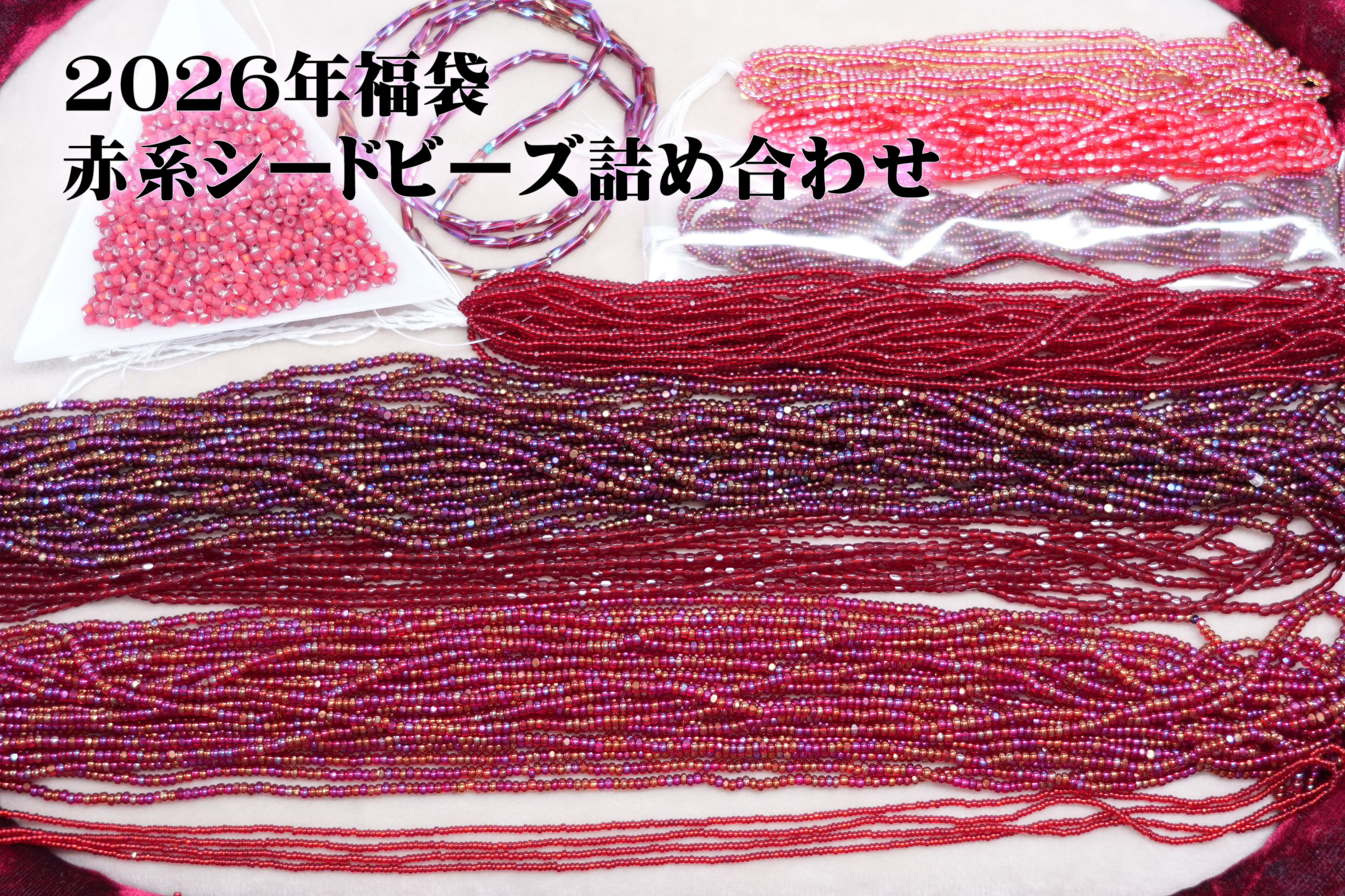 2026年福袋・赤系シードビーズ詰合せ 3セット